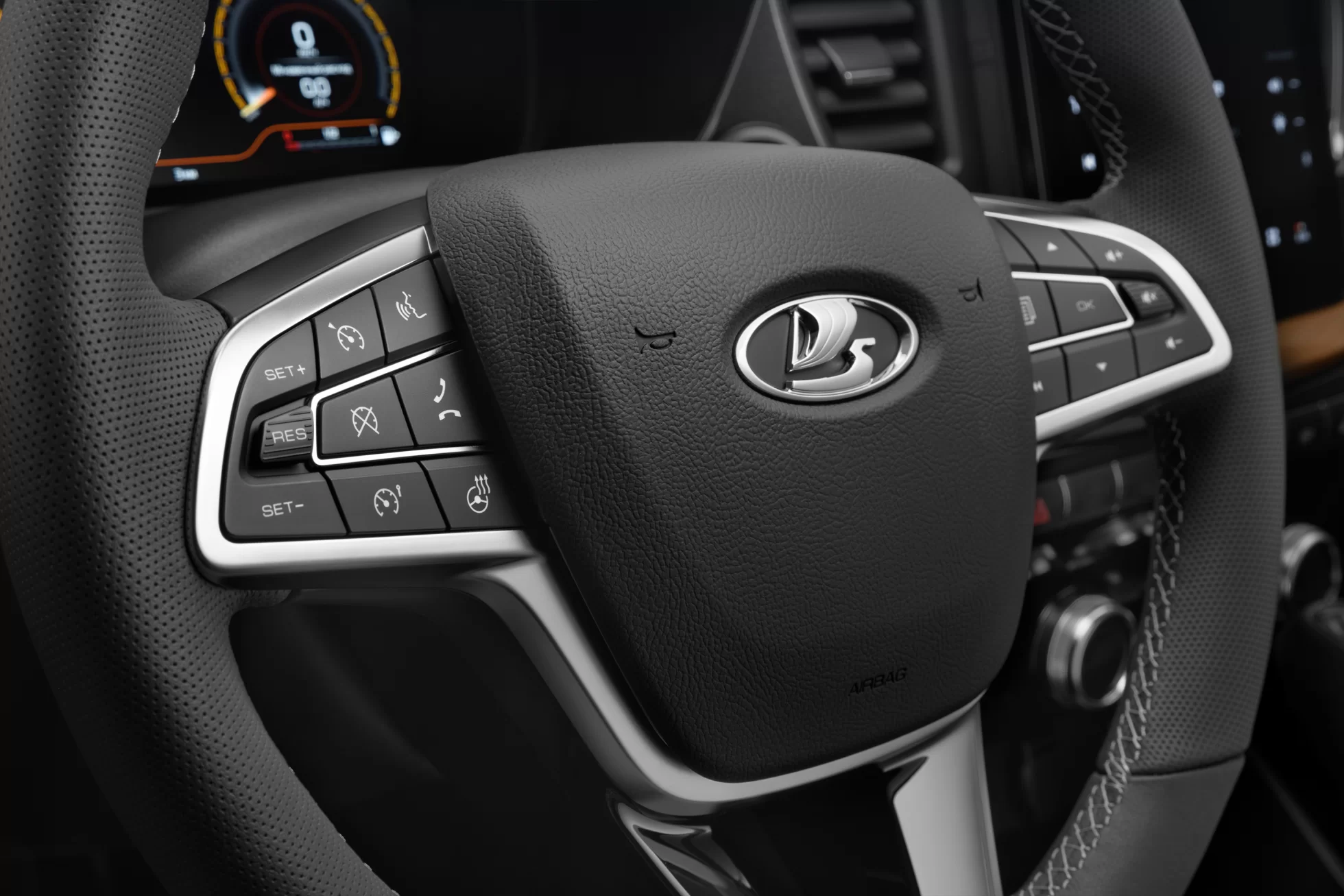Обогреваемое рулевое колесо с кожаной оплеткой обода вошло в состав «верхних» комплектаций Enjoy и Techno. В этих версиях выпускаются автомобили с типом кузова седан, седан Cross, SW и SW Cross. В топ-комплектации доступны и такие системы комфорта, как обогреваемое лобовое стекло, атмосферная подсветка салона и мест входа-выхода в передних дверях, очечник с микролифтом, камера заднего вида, а также 8 динамиков для наиболее полноценного звучания мультимедийной системы LADA EnjoY Vision Pro.