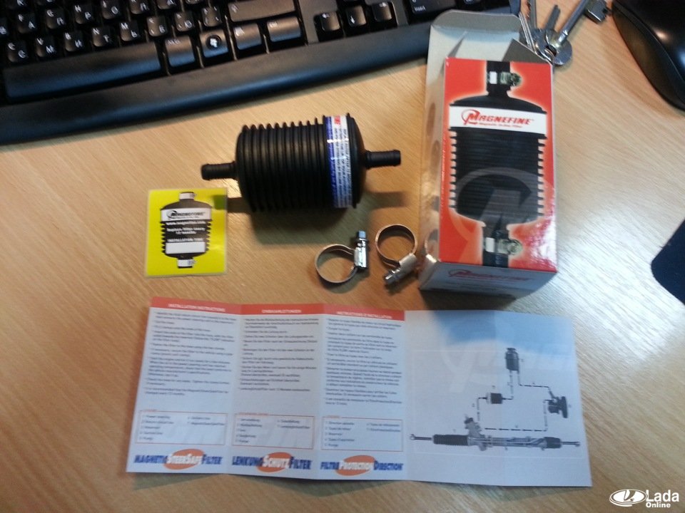 Штатный бачок ГУР на автомобилях Лада неразборный (производитель ZF). Внутри него есть фильтр, который представляет собой мелкую сетку. Если вы считаете, что такой защиты недостаточно, установите бачок ГУР от Волги (ГАЗ 3110), каталожный номер: 3105-3407178. На выбор два вида: