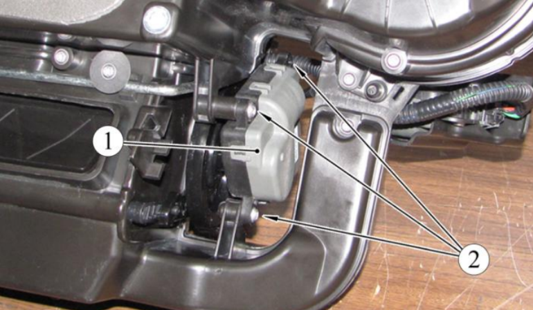 Отвернуть винты 2, рисунок 5-3, крепления микромоторедуктора 1 заслонок воздухораспределения (головка сменная Torx 20, вороток).