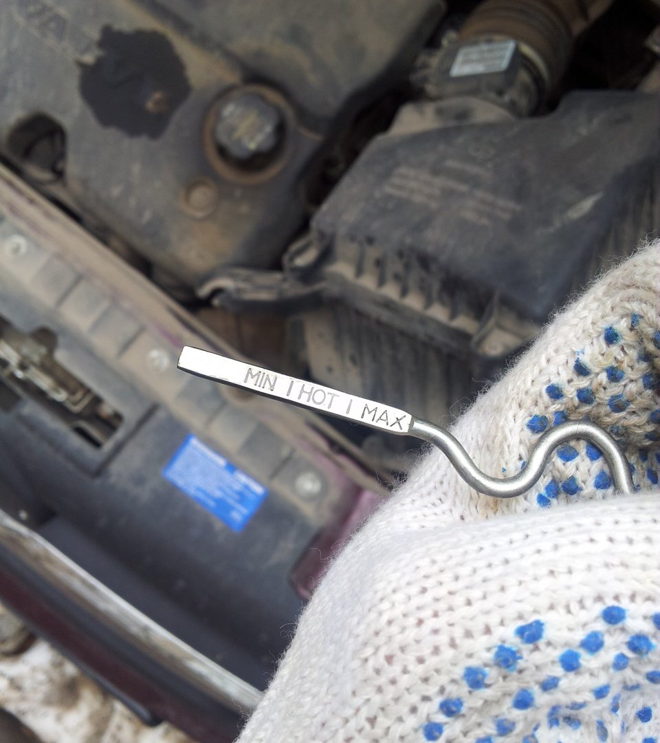- извлечь щуп, протереть его и вновь вставить в АКП до упора.