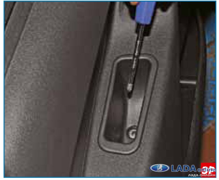 ![Поддеть заглушку винта крепления обивки к двери гранты]()