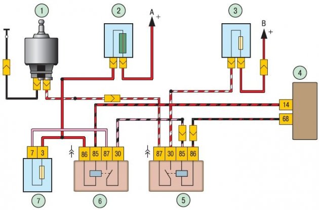 6. Обрыв цепи. В первую очередь следует зачистить контакты в разъемах. Если это не поможет, прозвонить проводку (см. схемы электрооборудования для Lada XRAY, Vesta, Largus, Granta, Kalina, Priora, Niva 4x4).