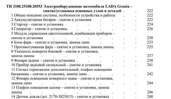 - ТИ 3100.25100.20553 Электрооборудование автомобиля LADA Granta – снятие/установка основных узлов и деталей