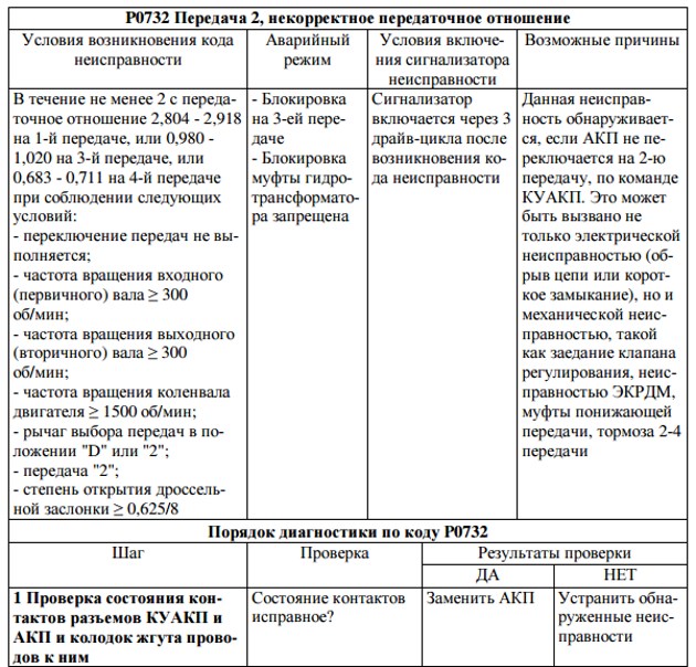 P0732 "Неправильное передаточное число АКПП на 2 передаче"
