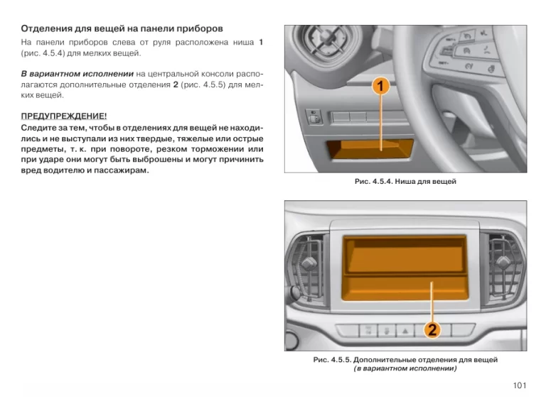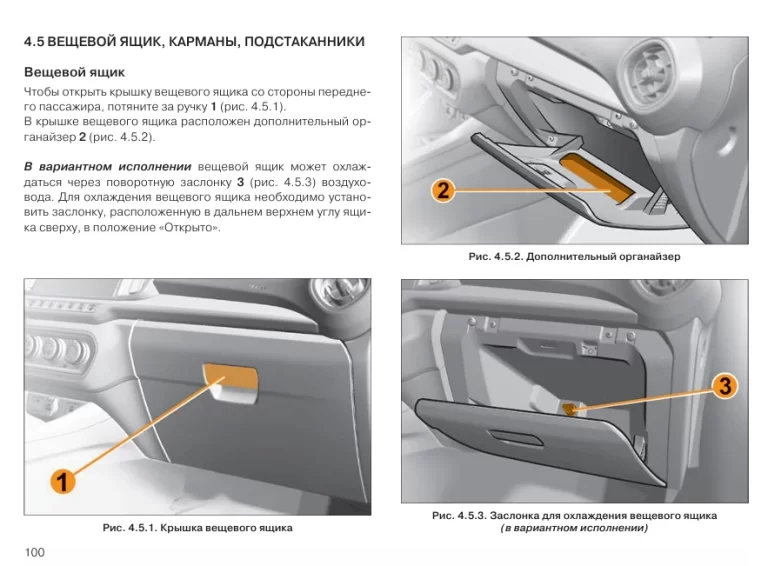 4 .5 Вещевой ящик, карманы, подстаканники. . . . . . . . . . . 100