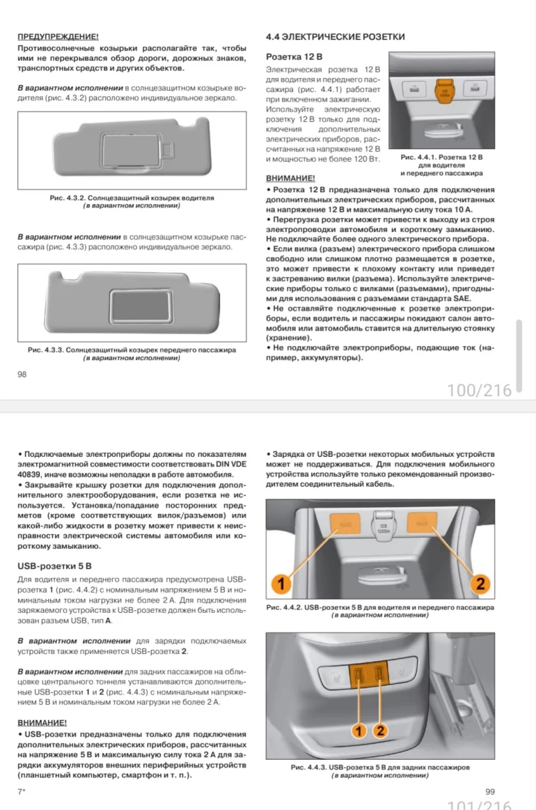 4 .3 Солнцезащитные козырьки. . . . . . . . . . . . . . . . . . . . . . 97