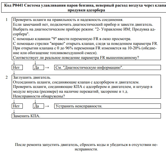 0444 Замыкание или обрыв клапана продувки адсорбера