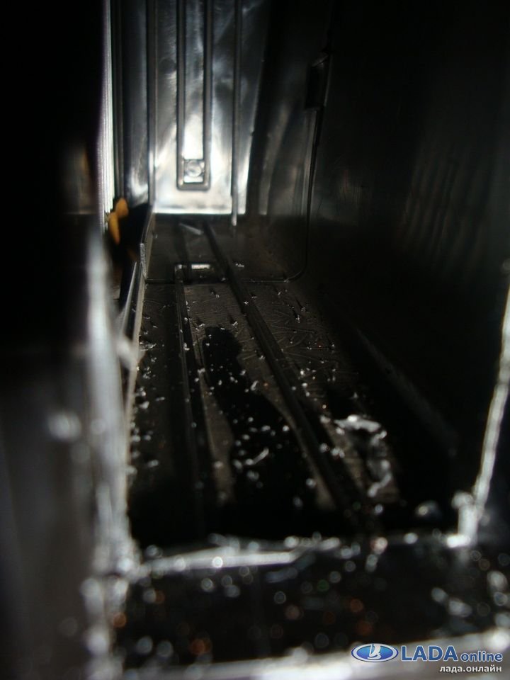 Необходимо вырезать заглушку, используя острый канцелярский нож или пилку по металлу. После того, как кусок пластику вырезан, следует зачистить края пропилов и включить вентилятор печки на максимальную скорость, чтобы из проёма для фильтра вылетела вся стружка.