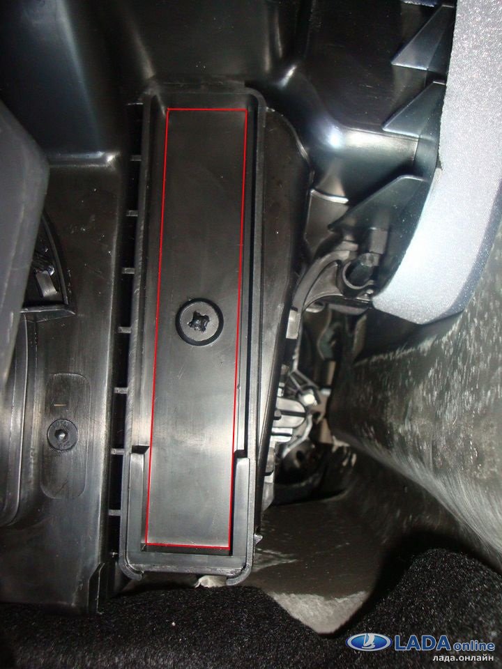 Отодвинуть переднее сиденье пассажира максимально назад. Затем наклониться так, чтобы получить доступ к заглушке воздушного фильтра, которая находится возле левой ноги переднего пассажира (см. фото).