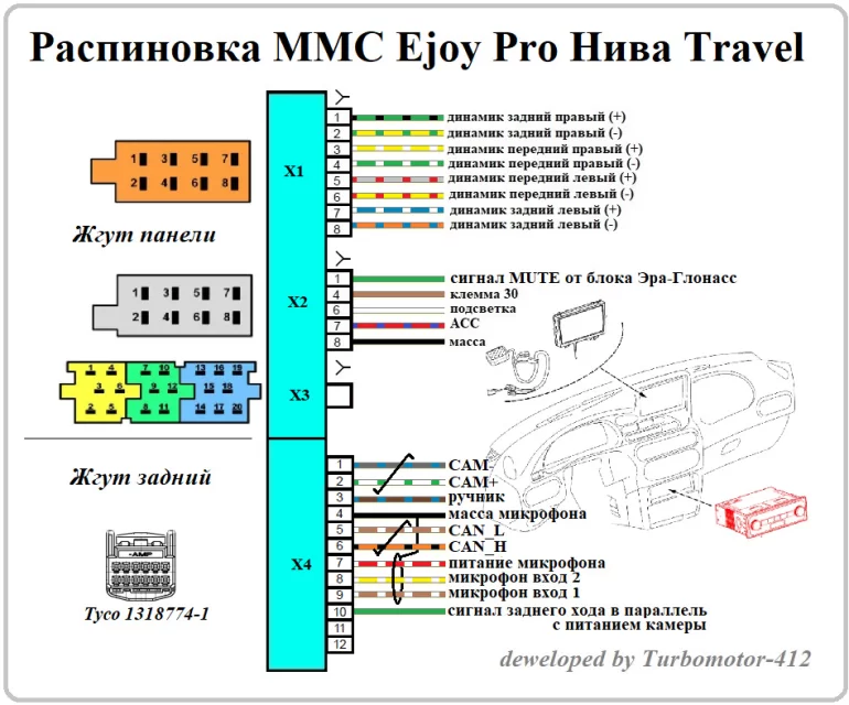 Распиновка ММС EnjoY PRO на Lada Niva Travel