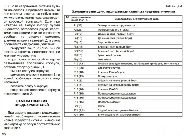 • F2 (60 А) – предохранитель цепи питания вентилятора системы охлаждения двигателя (силовая цепь), дополнительное реле (реле зажигания), обогрев заднего стекла, контроллер электропакета;