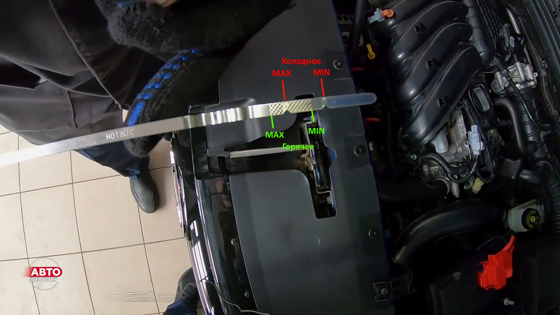 Уровень масла должен быть между этими отметками. Проверять следует на заведенном двигателе.