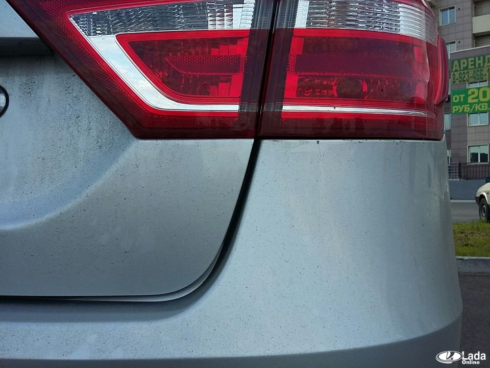 Недостаточный зазор между крышкой багажника и задним бампером на седане может быть причиной повреждения лакокрасочного покрытия бампера. По этой проблеме есть информационное письмо АВТОВАЗа. Необходимо выполнить регулировку зазора и в случае необходимости заменить буфер.
