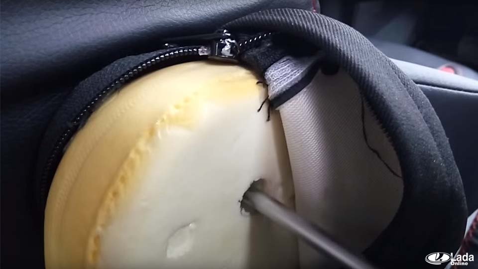 На более дорогих комплектациях в салоне Весты установлен штатный подлокотник. Его главная особенность в том, что он не имеет бокса для хранения вещей, крепиться сбоку сиденья и предназначен только для водителя. По статистике около 70% владельцев считают, что штатный подлокотник неудобный. Если вы решили заменить его на другой, но предварительно его придется снять.