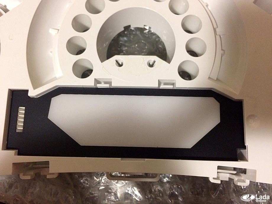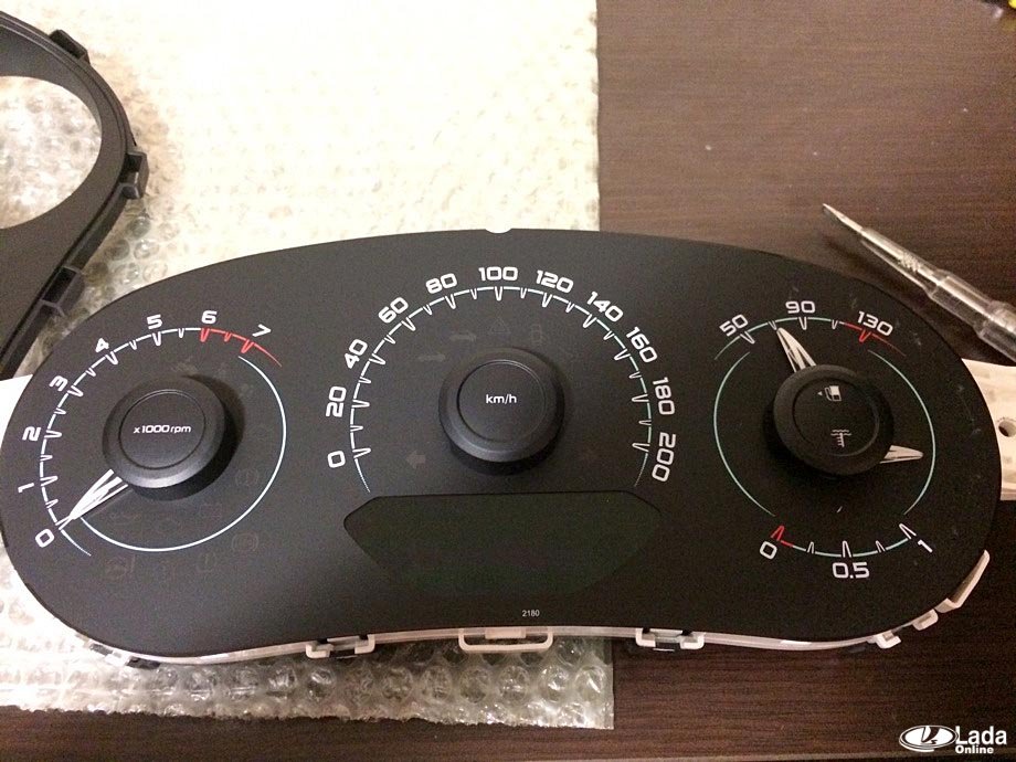 Щиток приборов на Весте имеет современный дизайн. Основные показания находятся в трех больших колодцах и подсвечиваются при помощи SMD-диодов. В случае необходимости эту подсветку можно заменить, но для этого придется сначала разобрать комбинацию приборов Весты.