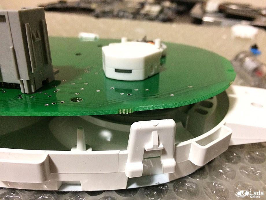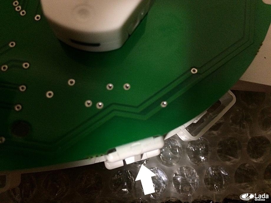 Теперь можно доставать из корпуса приборки плату, которая удерживается фиксаторами: