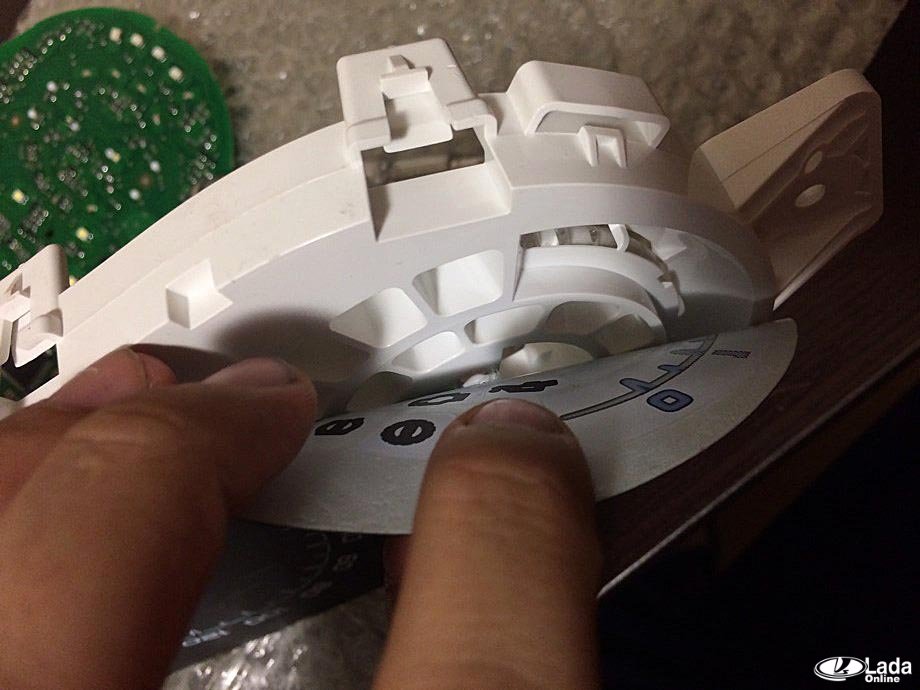 Наверное, самое сложное во всем процессе - это снять стрелки комбинации приборов. Их следует выкручивать против часовой, и с хорошим усилием, на себя. Очень аккуратно, можно легко сломать ограничитель шестерёнки!
