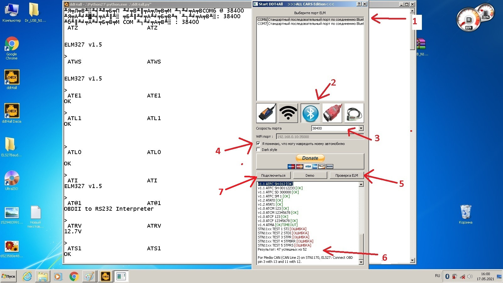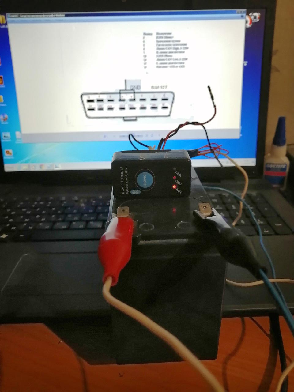 Чтобы сделать автотест приборной панели Весты нужно имитировать нажатие кнопки «вверх» БК (замыкаем пин №5 на минус) и включение замка зажигания (пин №7 на плюс).