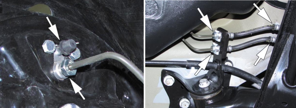 Герметичность системы гидравлического привода тормозов и сцепления, состояние шлангов, трубок и соединений (рисунки 20, 21, 22, 23).