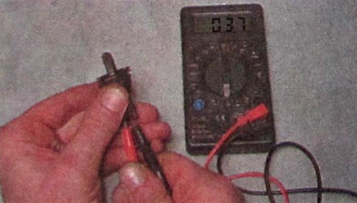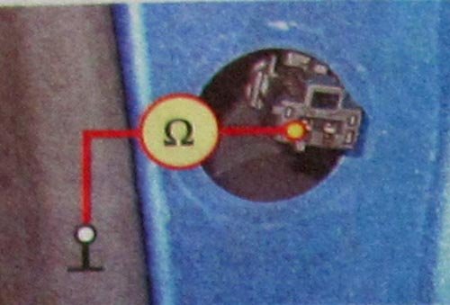 Устанавливаем мультиметр в режим омметра, один щуп подсоединяем к «массе» (кузову), а другой - к выводу колодки с черным проводом. Сопротивление должно быть близко к нулю. Если сопротивление большое и стремиться к бесконечности, вероятно место соединения провода с кузовом повреждено коррозией или поврежден провод (обработать соединение средством для защиты электрических контактов). Если так устранить неисправность не удалось, необходимо снять обшивку салона со стойки, найти и устранить неисправность.