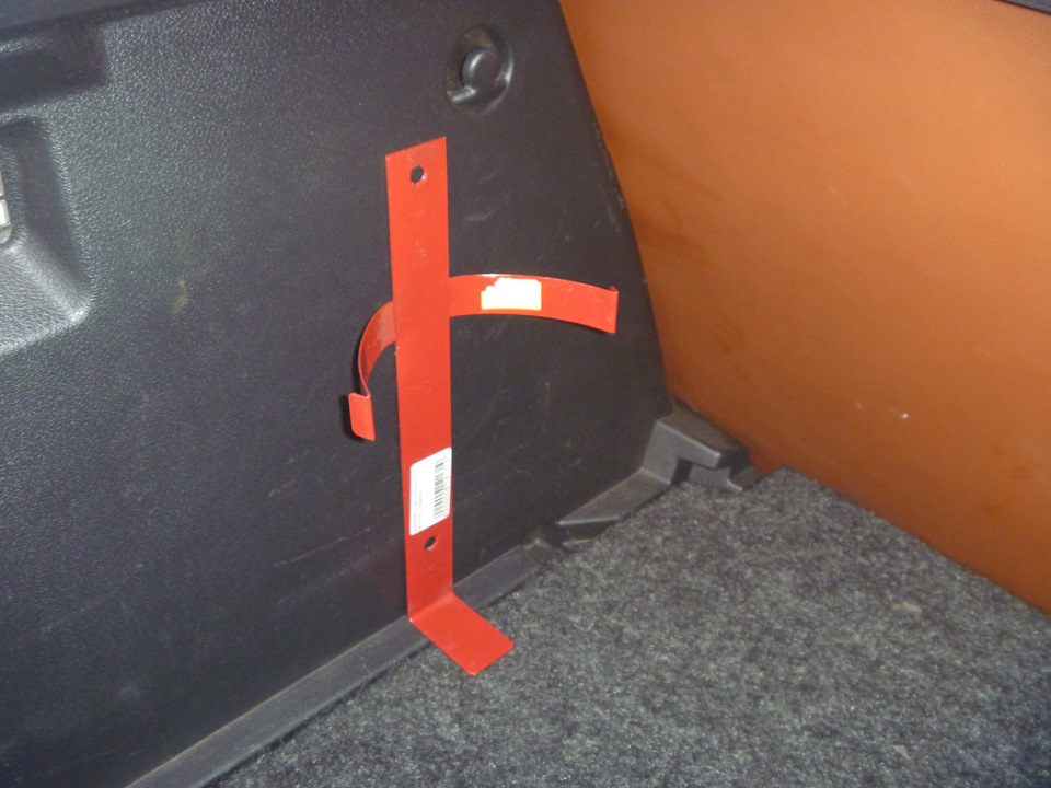 3. На задней полке. Для такого размещения огнетушителя приходится дорабатывать заднюю полку.