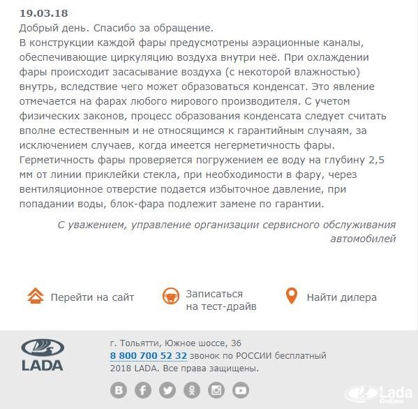 Частичное (незначительное) запотевание фары это нормально. Например, появление влаги в углах после мойки. Причина запотевания фар в этом случае следующая (ответ АВТОВАЗа):