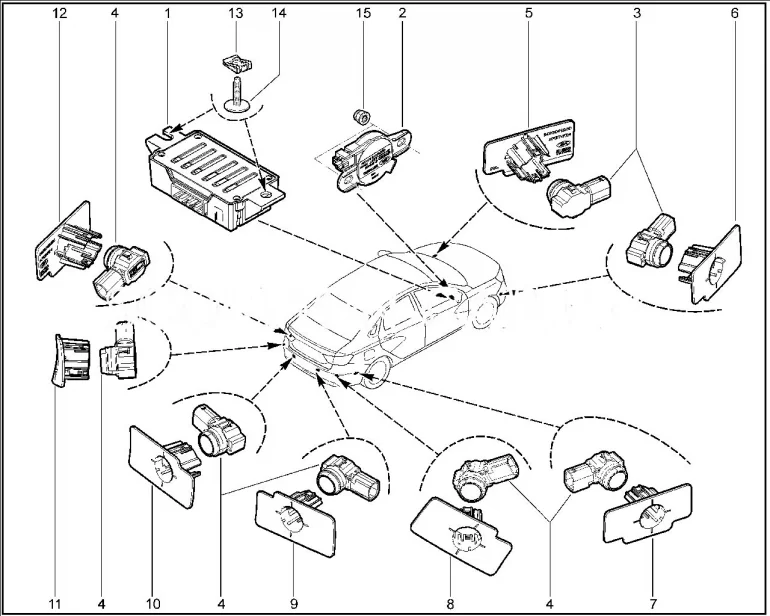 Держатель датчика системы парковки задний центральный левый |