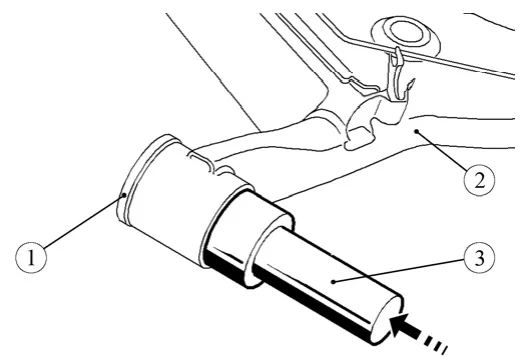 Рисунок 13-12 – Запрессовка шарнира: 1 – шарнир рычага задней подвески; 2 – рычаг задней подвески; 3 – оправка 67.7823-9715-2