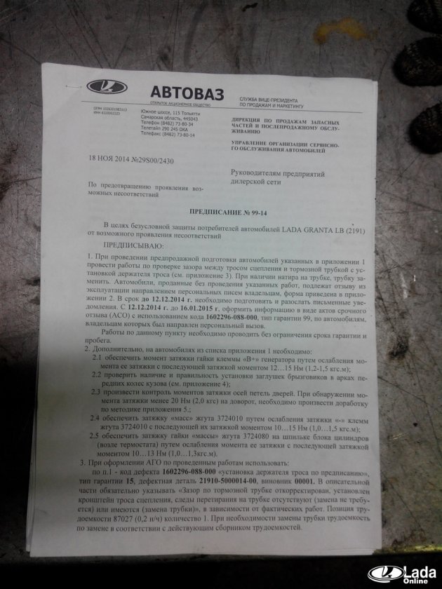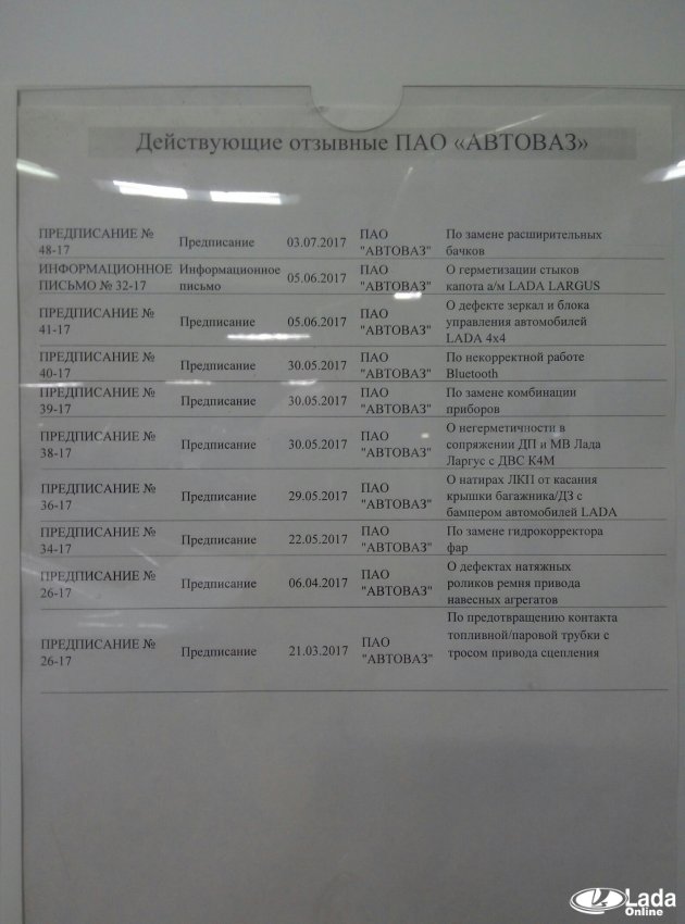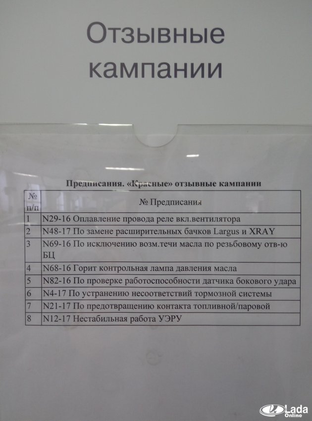 Ключевые слова: предписание автоваза | отзывные и сервисные кампании лада гранта | отзывные и сервисные кампании lada xray | отзывные и сервисные кампании лада веста | отзывные и сервисные кампании лада ларгус | отзывные и сервисные кампании лада нива легенда | отзывные и сервисные кампании лада калина | отзывные и сервисные кампании лада приора