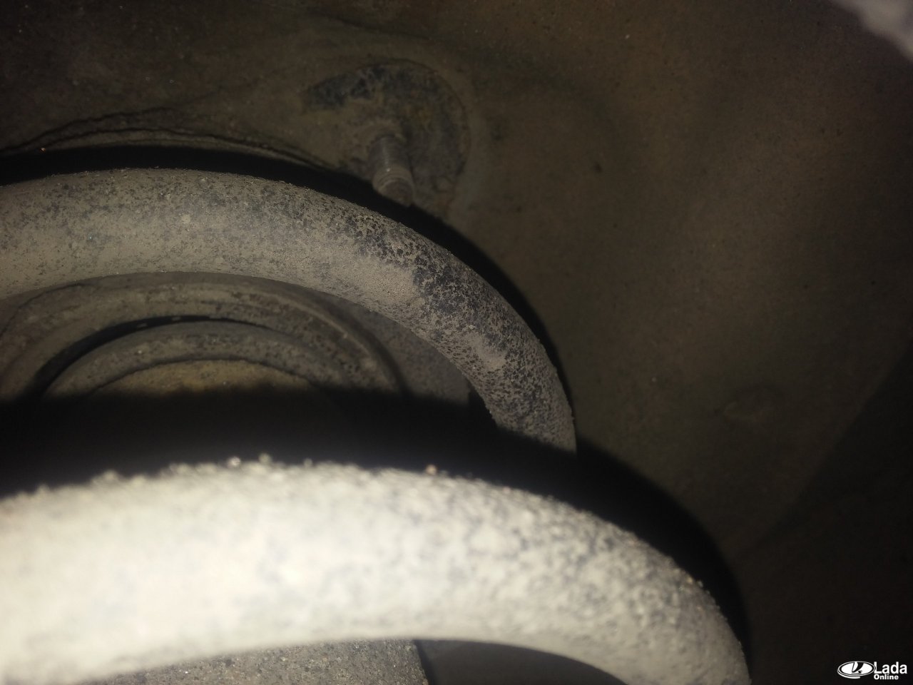 В целях безусловной защиты прав потребителей от возможного несоответствия «задевание резиновой прокладки о крепежные элементы верхней опоры» стойки передней подвески на автомобилях Lada Vesta SW/Cross есть предписание №19-18 от 08.02.2018 года. Для устранения несоответствия на машинах из списка дилеры меняют болты крепления. Предписание прислал один из читателей лада.онлайн.