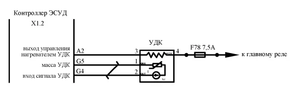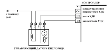 - сигнал УДК (управляющего датчика кислорода) повторяет по форме сигнал управления нагревателем (замыкание цепи выходного сигнала на цепь управления нагревателем);
