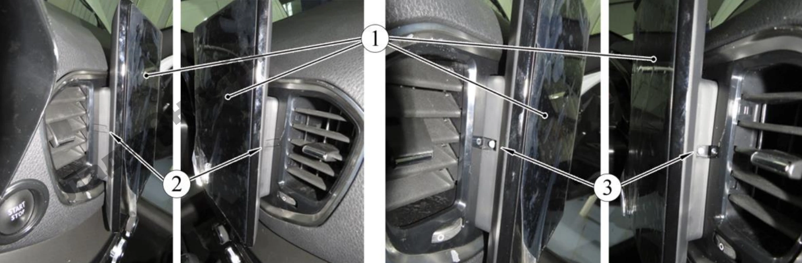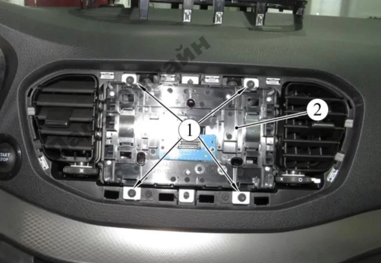 Рисунок 4-1 – Облицовка центральная панели приборов: 1 – панель приборов; 2 – облицовка центральная панели приборов