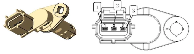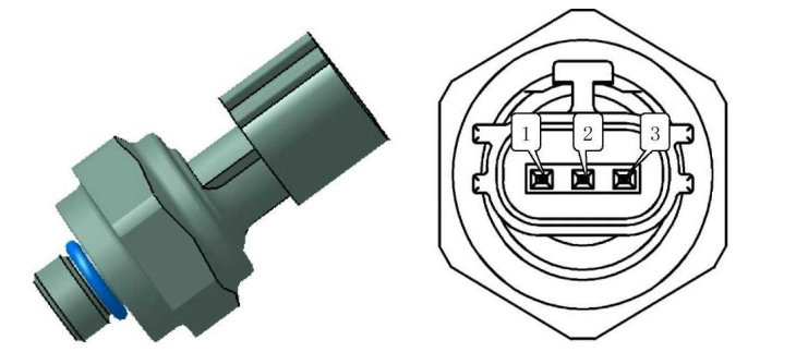 Назначение контактов разъема датчика давления масла: 1 – масса; 2 – выход напряжения сигнала; 3 – напряжения питания