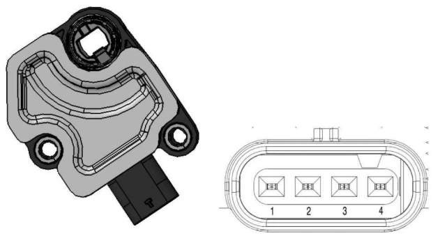 Распиновка контактов разъема датчика переключения передач: 1 – напряжения питания; 2 – выходной сигнал 1; 3 – масса; 4 – выходной сигнал 2