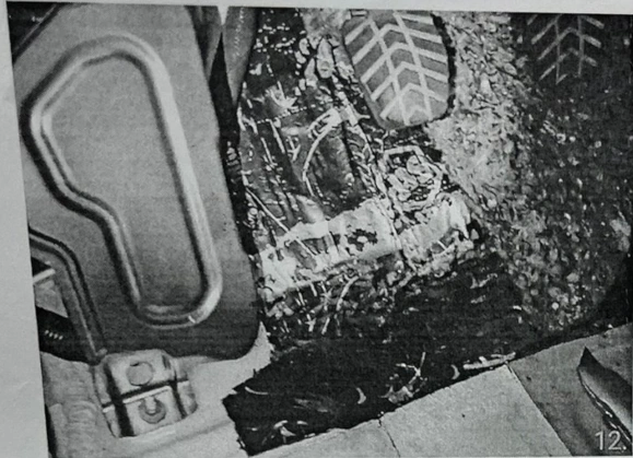 Со стороны салона произвести демонтаж облицовки порога, отсоединить точки крепления и отвернуть в сторону переднюю часть коврика салона и обивки шумоизоляционной, для обеспечения доступа к зоне ремонта.