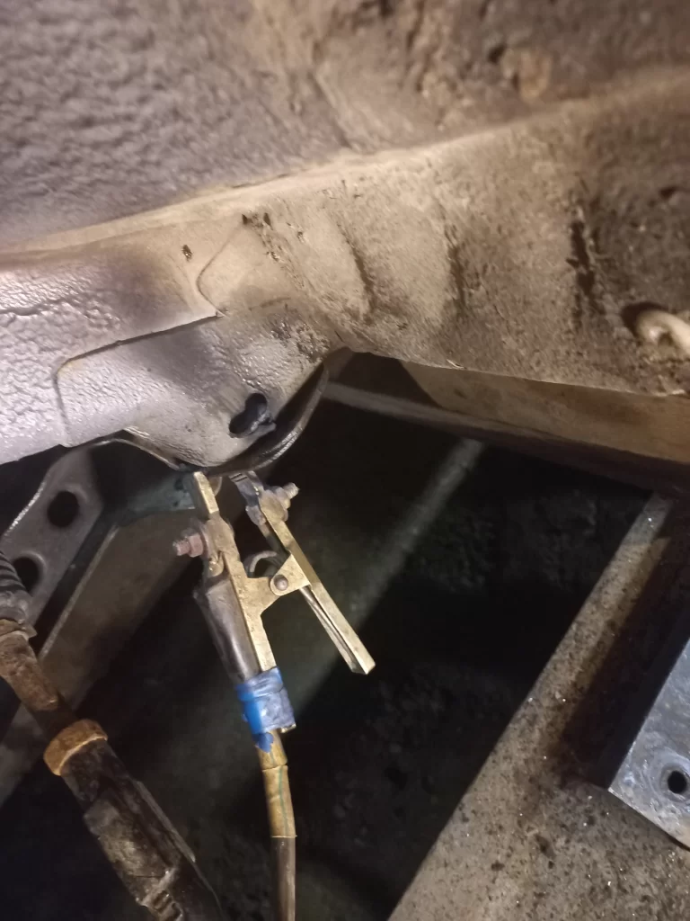 Зафиксировать гайку на кронштейне с помощью сварки, обеспечив свободное заворачивание и отворачивание болта подрамника.