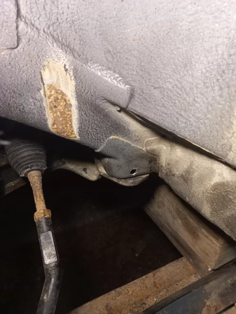 Проверить и при необходимости восстановить защитное покрытие с наружной стороны кронштейна крепления подрамника.