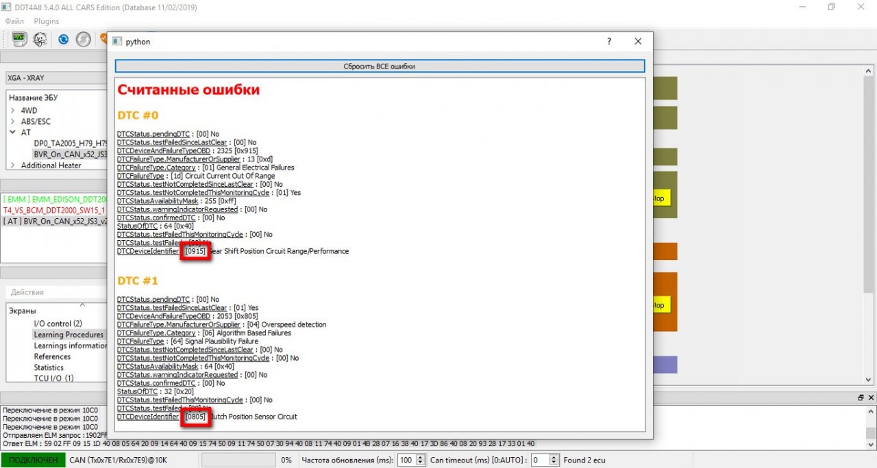 Обучение проводилось на двух разных сканерах ELM 327 c Bluetooth и с USB, на двух разных программах ECU Tweaker на планшете и DDT4ALL на ноутбуке. Сканер ELM с Bluetooth подключался к ноутбуку и к планшету.