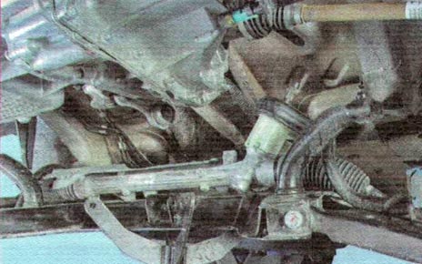 - Снять с подрамника рулевой механизм с рулевыми тягами в сборе.