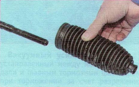 - Снять контргайку с внутреннего наконечника рулевой тяги (ключи гаечные 13, 22).