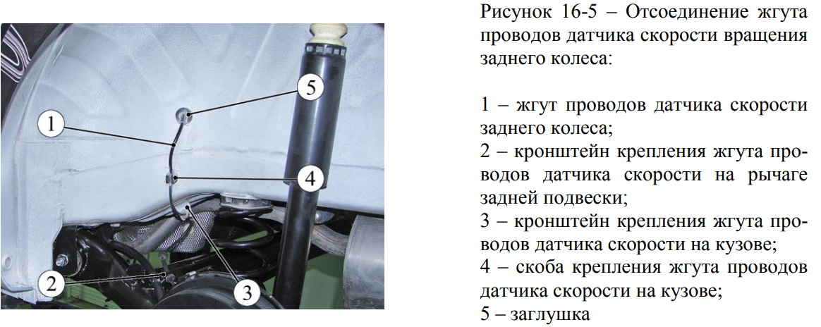 - Установить заглушку 5, рисунок 16-5, жгута проводов датчика скорости в отверстие в арке заднего колеса (отвертка плоская).