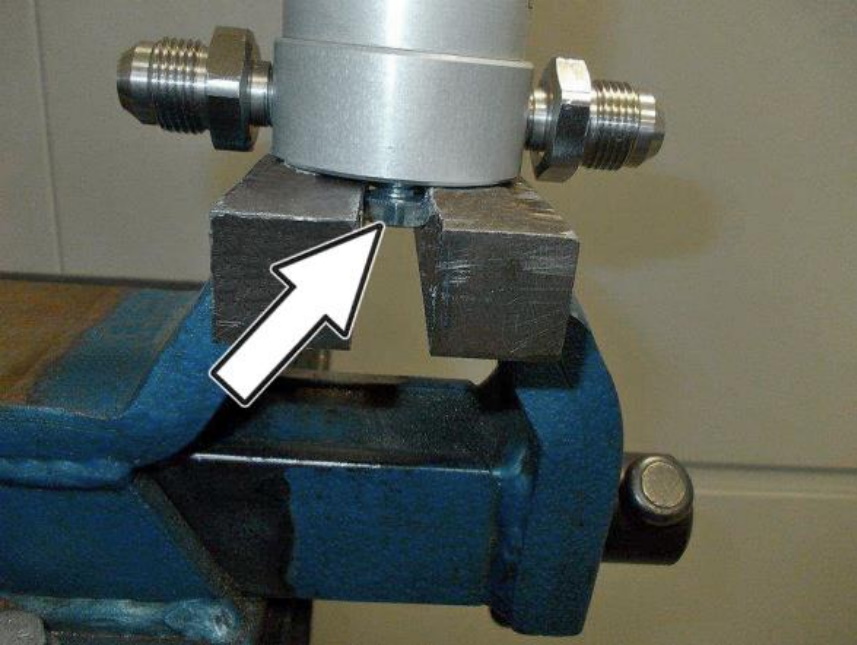Установить фильтр в тиски и зажать за болты крепления, как показано на рисунке 46.