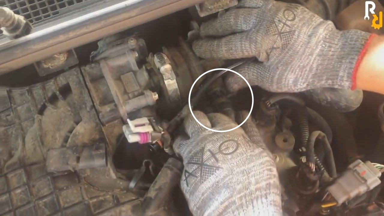 8. Снять патрубок на клапан вентиляции картерных газов, сжав хомут.