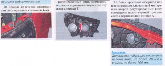 Инструкция по регулировке фар однотипная и выполняется по схеме (ее нужно разместить на стене):