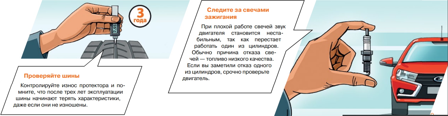 Проверяйте шины. Контролируйте износ протектора и помните, что после трех лет эксплуатации шины начинают терять характеристики,