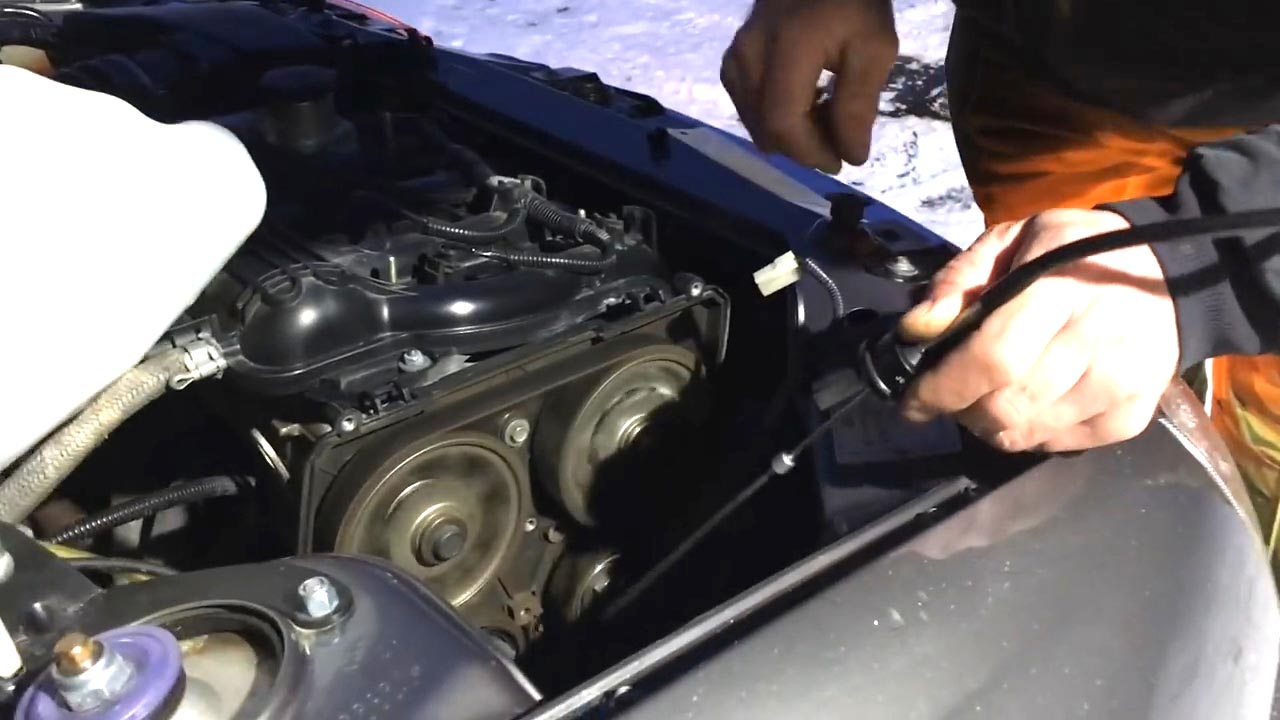 Все действия выполняются на работающем двигателе.