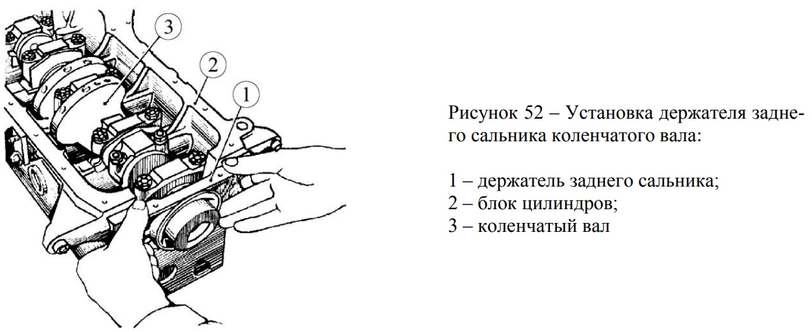 Момент затяжки болтов крепления 72…89 Н∙м (7,2…8,9 кгс∙м) (прокладка жидкая уплотняющая ПС-1, норма расхода 12 г; головка сменная 17, вороток, удлинитель, ключ моментный, фиксатор маховика 67.7820-9526).