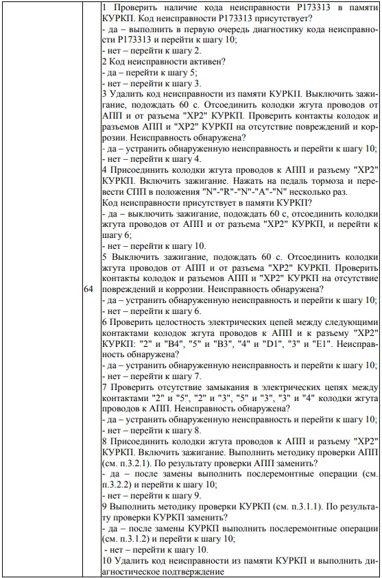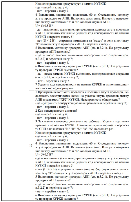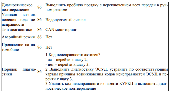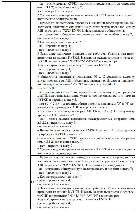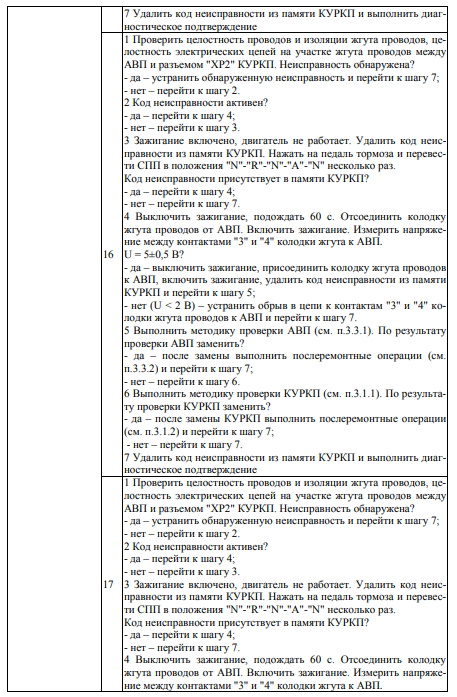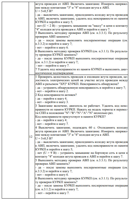 Коды неисправностей, считываемые из памяти КУРКП с помощью диагностического прибора, имеют семизначное обозначение, последние две цифры обозначают тип неисправности, например: Р056016 – Напряжение бортовой сети автомобиля. Напряжение в цепи ниже порога.
