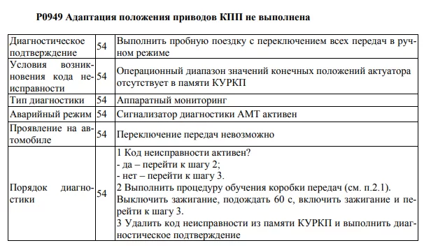 5. Здравствуйте.Помогите разобраться с коробкой на LADA GRANTA 1.6 АМТ 2017 Ошибка P0949(54) и Р0811(79) адаптация не проходит. До этого машина ездила и периодически отключалась передача на нейтралку. Некоторые разы во время езды появлялась шестеренка на щитке и пропадала связь с АМТ и коробка в этот момент не переключалась, после откл. зажигания и вкл. все восстанавливалось. Тогда коробка проходила адаптацию но адаптация не помогала. Ошибки были разные P1733(01), P1734(01), P0504(86), P1799, P1730, P0613, P0901, P0911.