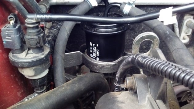 Зартаты на приведенную выше доработку: фильтр Bosch 0986450114 — 496 руб. (не считая распиленного для ознакомления с потрохами), шланги топливные к рампе 2170 (405мм) — 2х310=620 руб., кронштейн бачка ГУР 2110 (жестяные работы и покраска бесплатно сам) — 109 руб., камера велосипедная дармовая. Итого 1225 рублей.